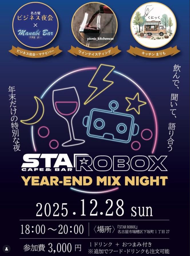 今回は「名古屋ビジネス夜会」さんとさらに「ぴくにっく」キッチンまりもさんとのコラボイベントになります!